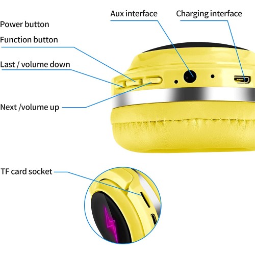 Color:Pink Wire & Wireless modeг Built-in rechargeable battery allows up to 8 hours of continuous playtime. Bonus detachable 3. 5mm Audio cable connects to any device with a headphone jack. Bluetooth 5.0г Powerful 40mm speaker with the bluetooth 5.0 technology, providing you the needs for quality natural sound and strong bass while keeping convenient. Once you done the matching, you can save the hassle for matching again. Stereo HD Sound & Built-in Micг The Over-Ear headphones provides stereo Hi-fi level sound quality and strong bass. Superior sound quality helps you enjoy your music better. Build-In Microphone and Volume Control let you to answer calls and play/pause a song by pressing the button. Professional Soft Earpads & Convenient Foldable Designг The super soft earpads can give you the maximum comfort regardless even wear for a long time. The headphones can stretchable length that fit for the heads from 10 year old children to adult. Foldable headband and portable size suite for daily use and outdoor travelling. Wide Compatibility & WarrantyгThe kids headphones works with almost all smartphones, tablets, computers, such as iPad, iPod, iPhone, android cell phone etc. You are entitled to enjoy 6 month replacement warranty and 24-hour customer support service. Any questions please feel hassle-free to contact usгЂ‚