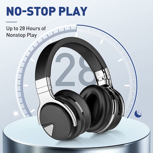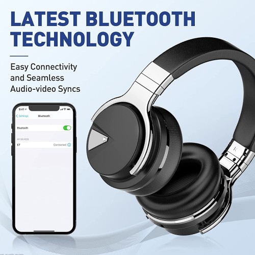 Tapela E7 Wireless Active Noise Cancelling Headphones, Over Ear Bluetooth Headphones with Microphone, 28H Playtime, Deep Bass, Comfortable Protein Ear Cups, for Travel, Home Office - Titanium Black
